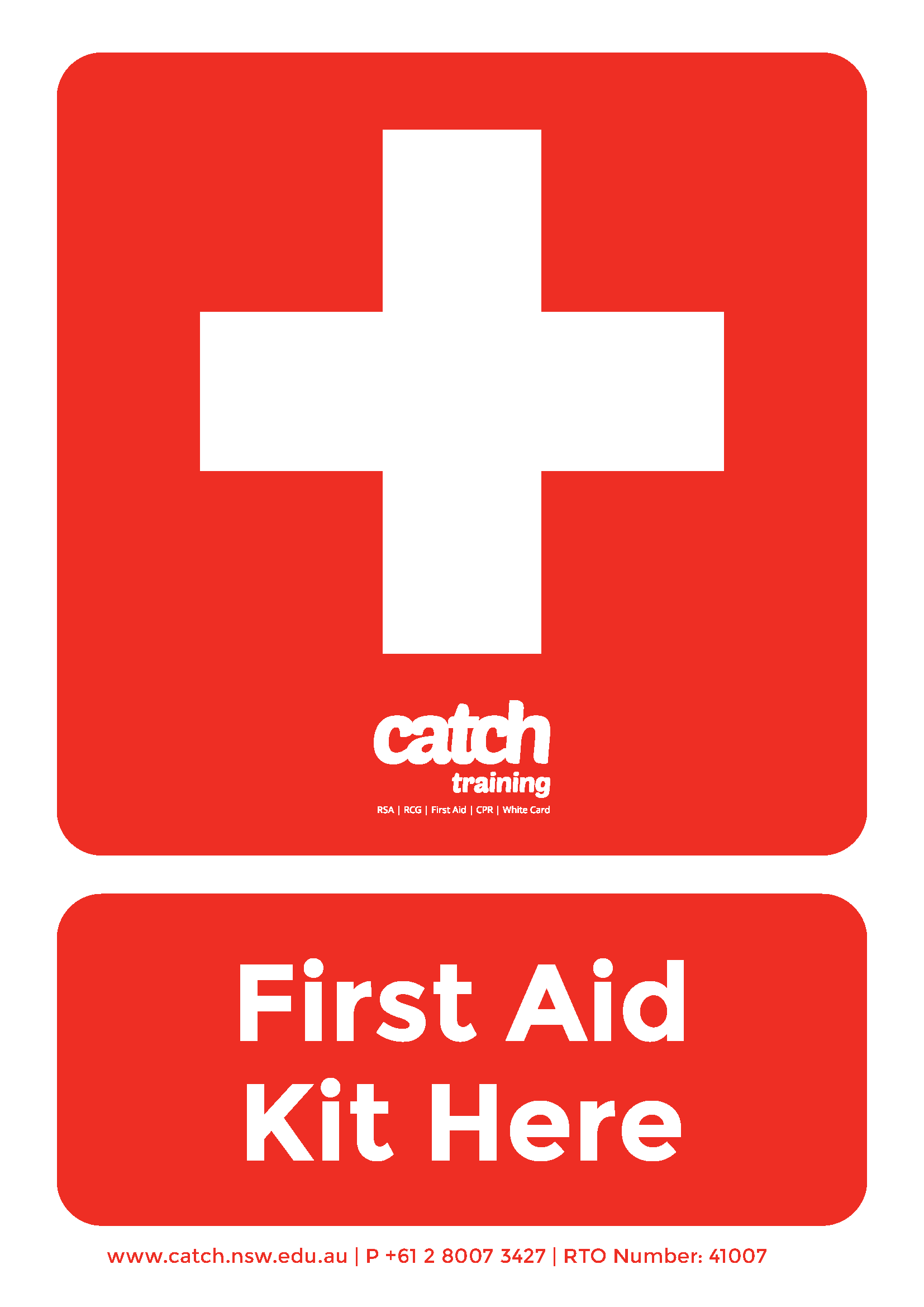 Please find below a free First Aid Kit Here poster printable. Just click the image to download and print. Mount it to show clearly where the First Aid Kit is kept within your organisation.